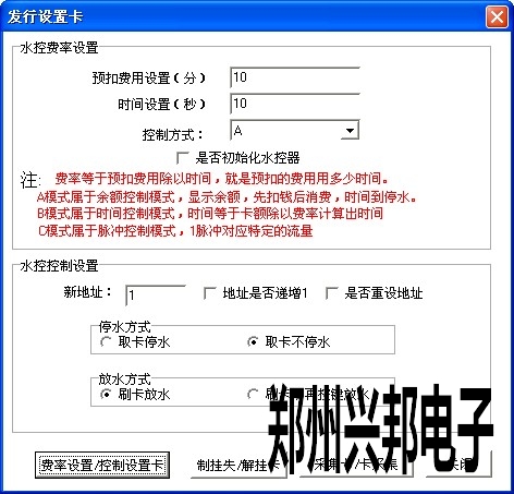 是否初始化水控器,該復(fù)選框中對管理卡來說的。如果在設(shè)置管理卡的時(shí)候選中該復(fù)選框,使用管理卡設(shè)置預(yù)扣費(fèi)率的同時(shí)也初始化了水控機(jī)上的所有消費(fèi)數(shù)據(jù)。