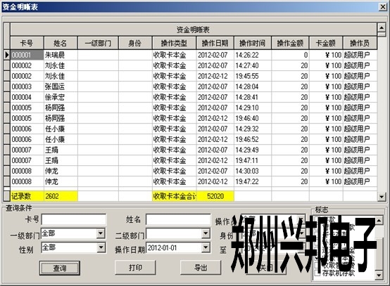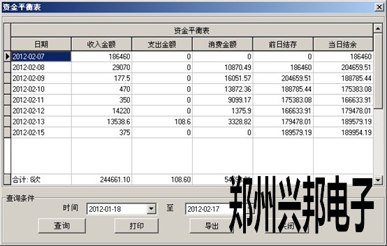 3.數(shù)據(jù)管理-資金明細表中可以根據(jù)標志‘收取卡本金’查詢出收取卡本金合計:52020元,189954.19-52020=137934.19