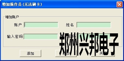 1. 打開485售飯機軟件--系統(tǒng)管理--賬戶管理--增加用戶,可以輸入賬戶、姓名、密碼,然后點添加后關閉此對話框即可。