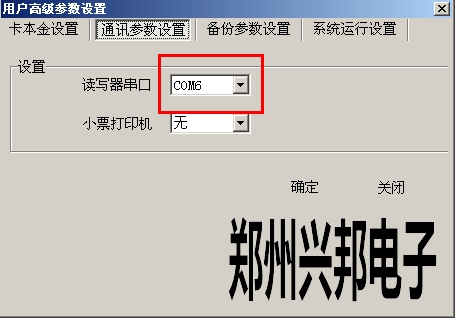 解決方法:經(jīng)詢問,電腦重裝過軟件,重裝后讀卡就出現(xiàn)這個錯誤了,軟件重裝后要重新設(shè)置讀卡器的端口,設(shè)置讀卡器端口是在軟件中的  系統(tǒng)管理-用戶參數(shù)設(shè)置-用戶高級參數(shù)設(shè)置-通訊參數(shù)設(shè)置-讀寫器串口中,如下圖所示: