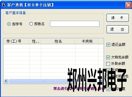 打開軟件 制卡中心-卡管理 在空白處鼠標(biāo)右擊,選擇有卡單個注銷或者無卡單個注銷,輸入學(xué)號或者姓名查詢出人員信息后,鼠標(biāo)雙擊查詢出的人員信息,即可完成注銷。
