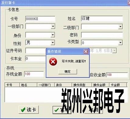 [文章內(nèi)容簡介]: 485軟件,客戶發(fā)行新卡,存款時讀卡的時候是正常的,寫卡的時候一直提示寫卡失敗,請重寫!這是什么原因呢?下面由興邦客服技術(shù)給大家解決這個問題的解決方法。