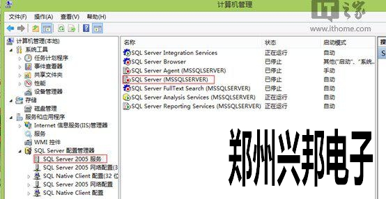 8、當(dāng)完成SQL Server 2005安裝后,先不啟動套件,而是先強(qiáng)制停止SQL Server的服務(wù)項(xiàng)目。(進(jìn)入計(jì)算機(jī)管理,選擇SQL Server配置管理器,禁止SQL Server 2005相應(yīng)的服務(wù)項(xiàng)目)