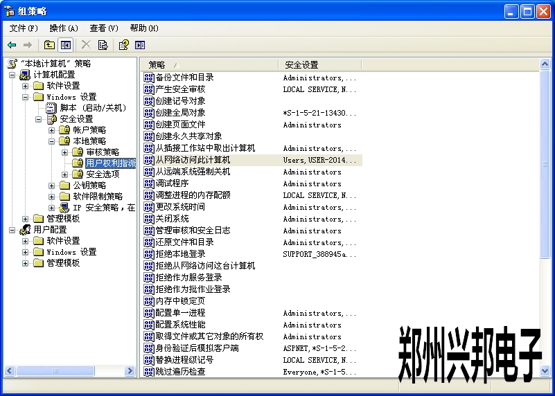 選擇“計(jì)算機(jī)配置” →“windows設(shè)置” →安全設(shè)置→“本地策略” →“用戶(hù)權(quán)利指派”打開(kāi)