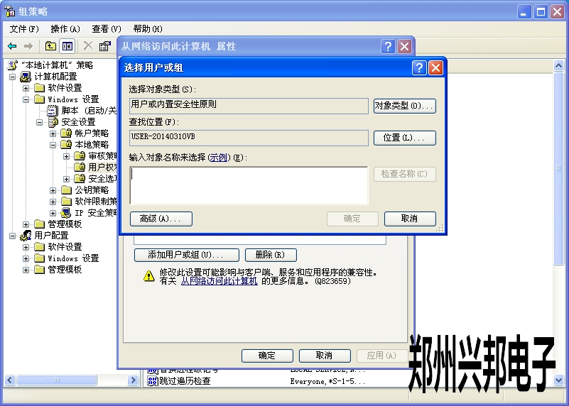 在“拒絕從網(wǎng)絡(luò)訪(fǎng)問(wèn)”右擊“屬性”把里面的所有賬戶(hù)刪除