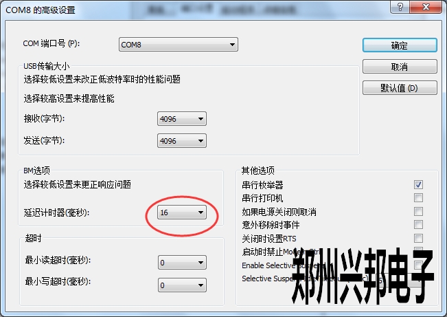 IC卡售飯機(jī)在通訊時(shí)需要用到九針串口,一般電腦自帶的有九針串口,如果電腦沒有自帶九針串口,可采用串口卡或者USB轉(zhuǎn)九針串口線。在實(shí)際使用時(shí),USB轉(zhuǎn)串口使用起來比較方便,即插即用,只要電腦有USB口就行,但是USB轉(zhuǎn)串口也有缺點(diǎn),缺點(diǎn)就是不穩(wěn)定,容易造成電腦藍(lán)屏、死機(jī),針對(duì)這種情況,可采用性能好一點(diǎn)的USB轉(zhuǎn)串口線,在使用時(shí)設(shè)置一下延遲,設(shè)置的方法如下: