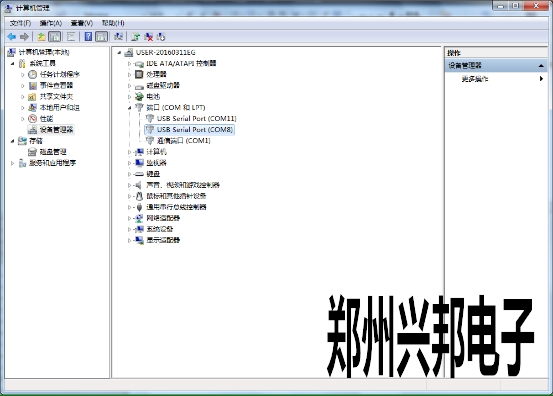 1、單擊計(jì)算機(jī)—單擊右鍵—管理—設(shè)備管理—端口。找到所用usb線端口。如下圖: