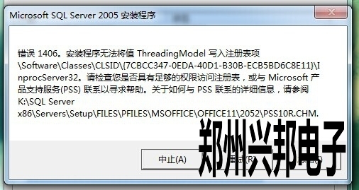 客戶使用的我們的互聯(lián)網(wǎng)一卡通食堂售飯機(jī),在安裝數(shù)據(jù)庫SQL2005時(shí)出現(xiàn)SQL server 2005 錯(cuò)誤  1406. 未能將值 CLSIDThreadingModel寫入注冊表項(xiàng)\Software\Classes\PROTOCOLS\Handler\ms-help. 怎么辦