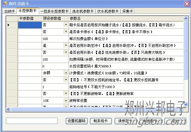 互聯(lián)網(wǎng)一卡通水控一體機的費率設置是需要在軟件里制一張設置卡,然后拿制好的卡片到機器上去刷一下。制費率卡的步驟如下: