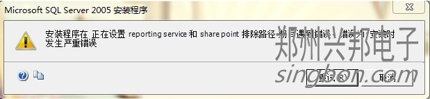 互聯(lián)網一卡通食堂售飯機的軟件,采集的信息都通過軟件設置存在數據庫SQL SERVER2005中,所以安裝軟件,首先要安裝數據庫SQL SERVER2005,但在安裝數據庫SQL SERVER2005時,安裝程序可能會在正在設置reporting和shre point 排除路徑 期間遇到錯誤,遇到的錯誤如圖所示: