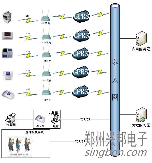 中文液晶顯示消費機433接口網(wǎng)絡(luò)布線圖