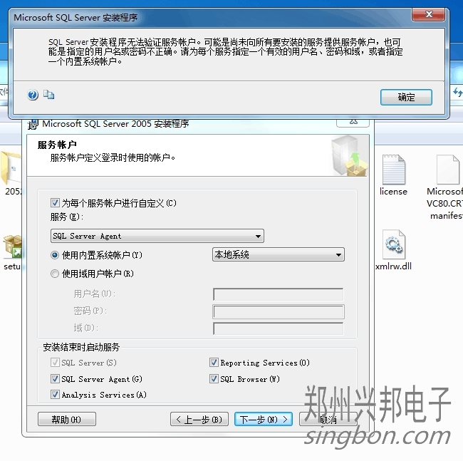 [文章內(nèi)容簡(jiǎn)介]:安裝SQL Server2005時(shí)提示安裝程序無法驗(yàn)證服務(wù)帳戶