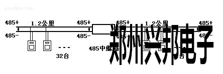 利用485中繼器延長(zhǎng)網(wǎng)絡(luò)距離圖示: