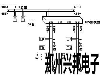 利用485中繼器或485集線器,可以將一個(gè)大型485網(wǎng)絡(luò)分隔成若干個(gè)網(wǎng)段。485中繼器或485集線器就如同485網(wǎng)段之間連接的"橋梁"。當(dāng)然每個(gè)網(wǎng)段還是遵循上面的485規(guī)范,即1.2公里長(zhǎng)度,32個(gè)節(jié)點(diǎn)數(shù)。