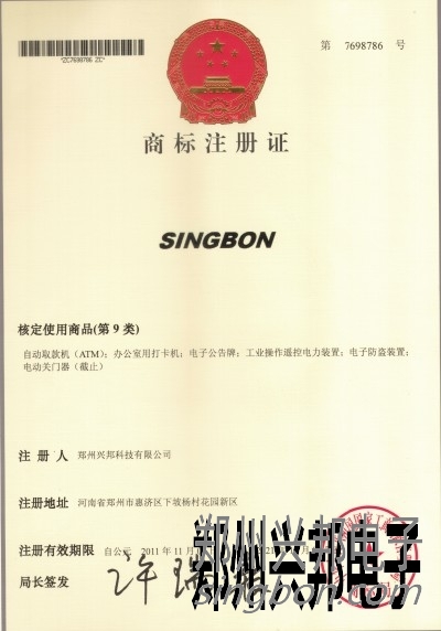 興邦電子(SINGBON)商標(biāo)注冊證書