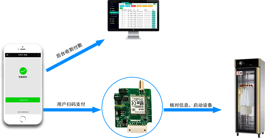 共享干衣機(jī)采用無人經(jīng)營(yíng)模式,用戶使用掃碼支付使用,運(yùn)營(yíng)商則借助云管理平臺(tái)實(shí)現(xiàn)遠(yuǎn)程管理。